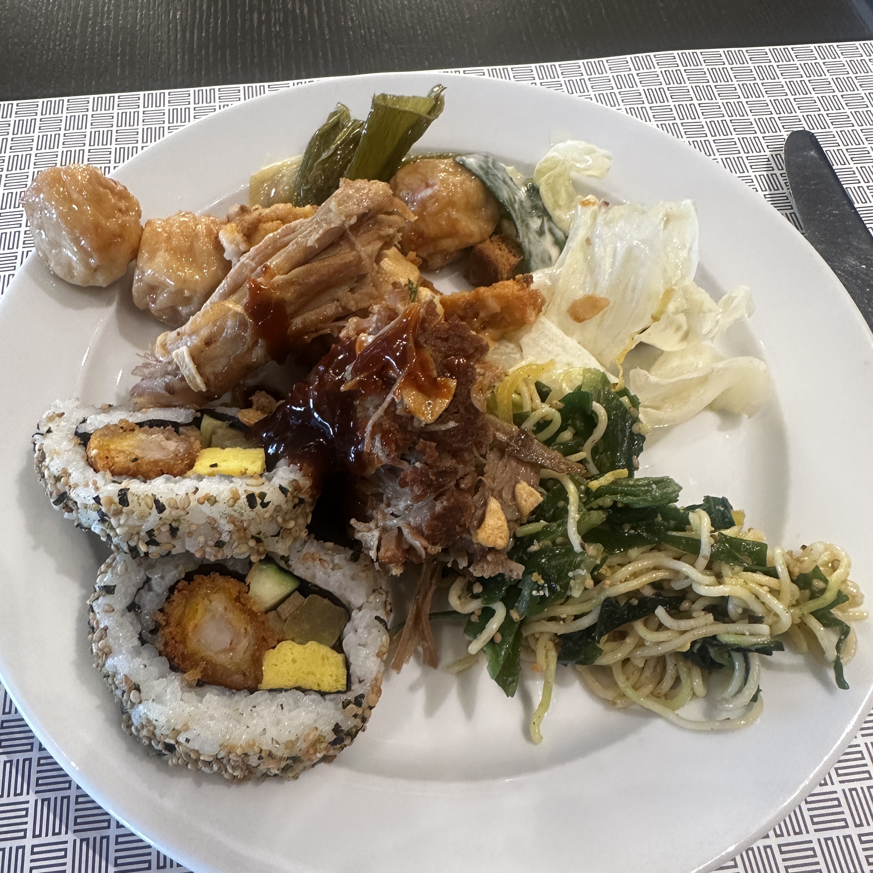 개인적으로 가자미 샐러드가 살짝 상큼하니 입맛을 돋궈주고 좋았는데요. 나물 파스타도 살짝 상큼하니 맛이 좋더라고요. 딤섬도 있고 풀드포크 바베큐도 서브웨이에서 자주 먹던건데 큼지막하게 나와있어 곁들여먹기 좋았답니다. 딤섬도 괜찮았고요. 전체적으로 종류가 많지는 않지만, 구성도 좋고 서버분들도 친절해서 가벼운 모임하기 좋았습니다. 요즘 뷔페 가격이 비싼데 호텔 뷔페 런치 3만 원이면 합리적이고요.