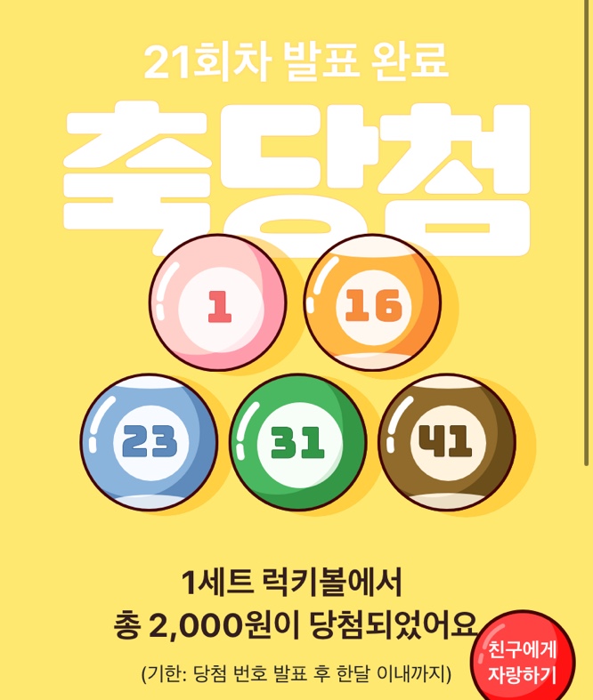 지금까지 약 22회 정도 진행되면서 한번도 당첨이 된 적 없었는데 연말에 이렇게 한번 당첨이 되어서 기분이 좋았습니다. 당첨되면 카톡으로 알림이 오고 그 알림 밑에 지급받기 신청을 바로 할 수 있도록 되어있어서 지급신청에 어려움이라는 것은 없습니다. 바로 카카오페이에 연결되어있는 카카오페이 통장으로 돈이 입금되었답니다. 2,000원 당첨된 것도 이렇게 재밌고 기쁜데 500만원 당첨되는 분들은 얼마나 기분이 좋을까 싶어요. 정말 부럽습니다. 아직 카카오페이 럭키볼 참여하지 않은 분들은 아래 링크를 통해서 들어가면 럭키볼을 하나씩 더 받을 수 있으니 링크를 통해서 가입하는 것이 더욱 이득이예요. 아직 하지 않은 분들은 링크를 통해서 바로 들어가시라구 함께 걸어놓도록 하겠습니다.