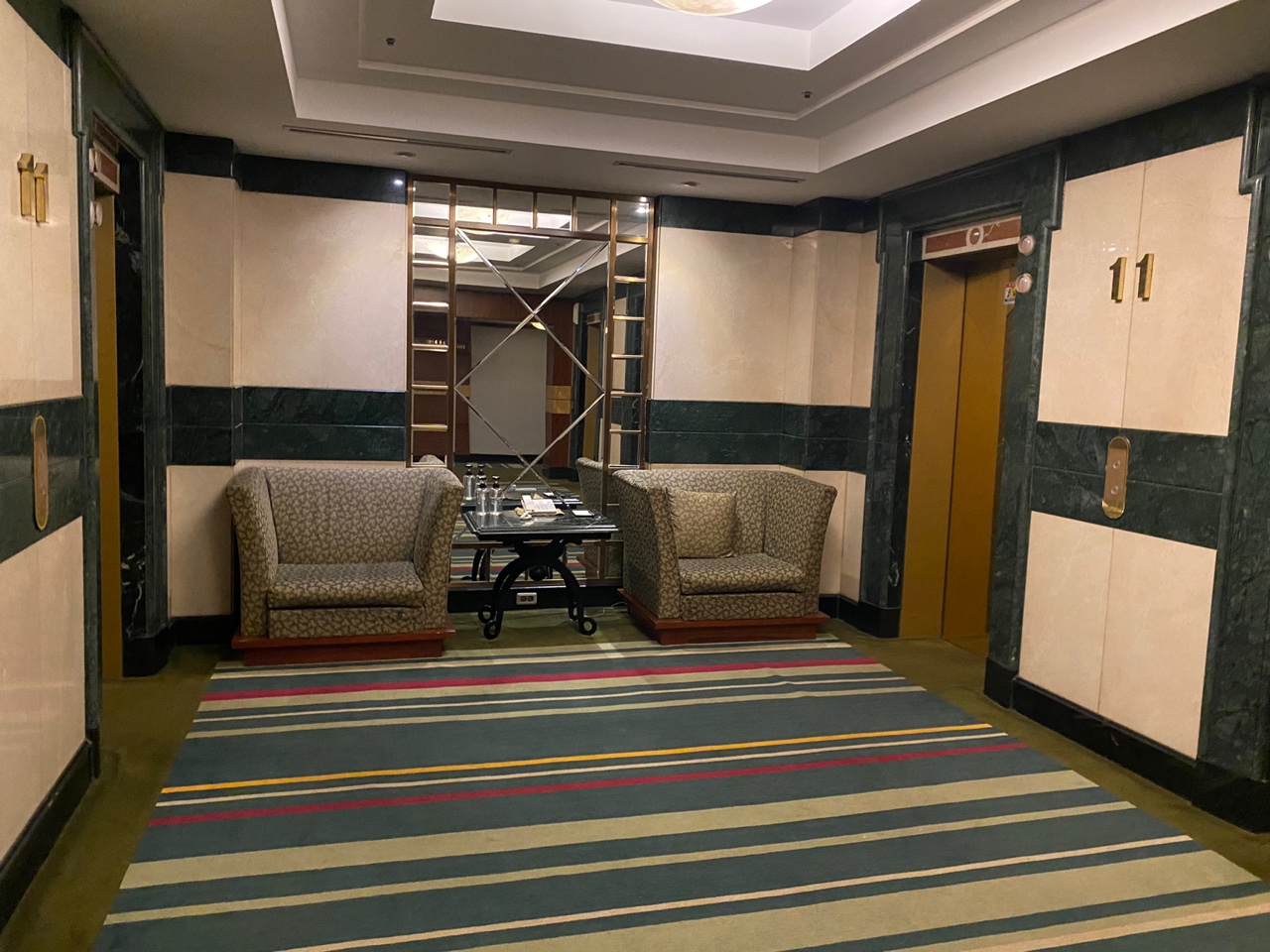 이렇게 좀 오래되긴 했으나 앤틱한 느낌이 드는 인테리어를 하고 있고요. 깔끔하고 조용합니다. 엘리베이터가 4대가 있기 때문에 객실 이동하는 것도 편했구요. 좀 촌스럽다는 느낌이 들수도 있을 인테리어기도 했지만 개인적으로는 마음에 들더라고요.